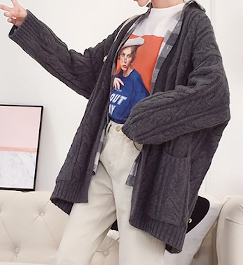 ★送料無料★ カーディガン レディース カーデ シャツ ロングカーディガン オフィス カジュアル tps-1736 【韓国ファッション】