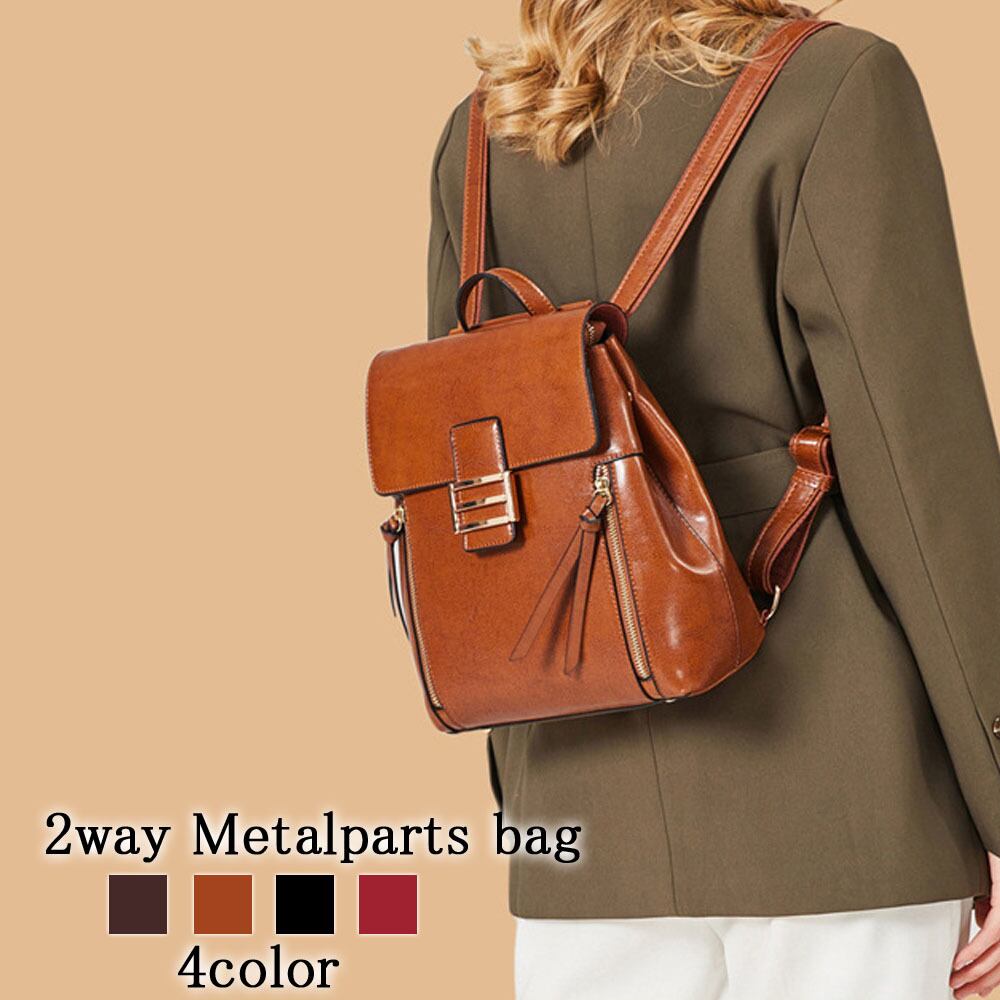 ★送料無料★ 2wayメタルパーツバッグ レディース リュック lib-89 【韓国ファッション】