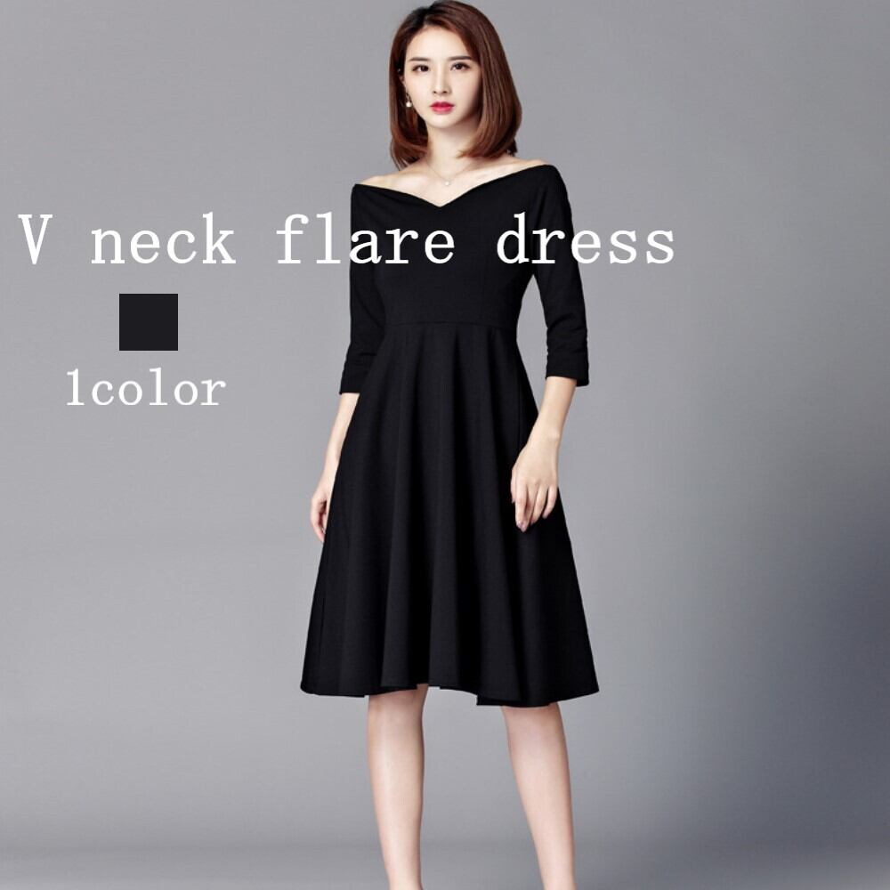 ★送料無料★ Vネックフレアワンピース レディース ワンピース lit-124 【韓国ファッション】
