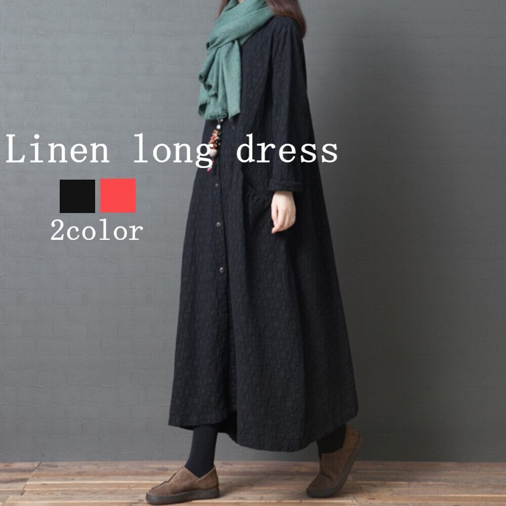 ★送料無料★ リネンロングワンピース レディース ワンピース lit-136 【韓国ファッション】