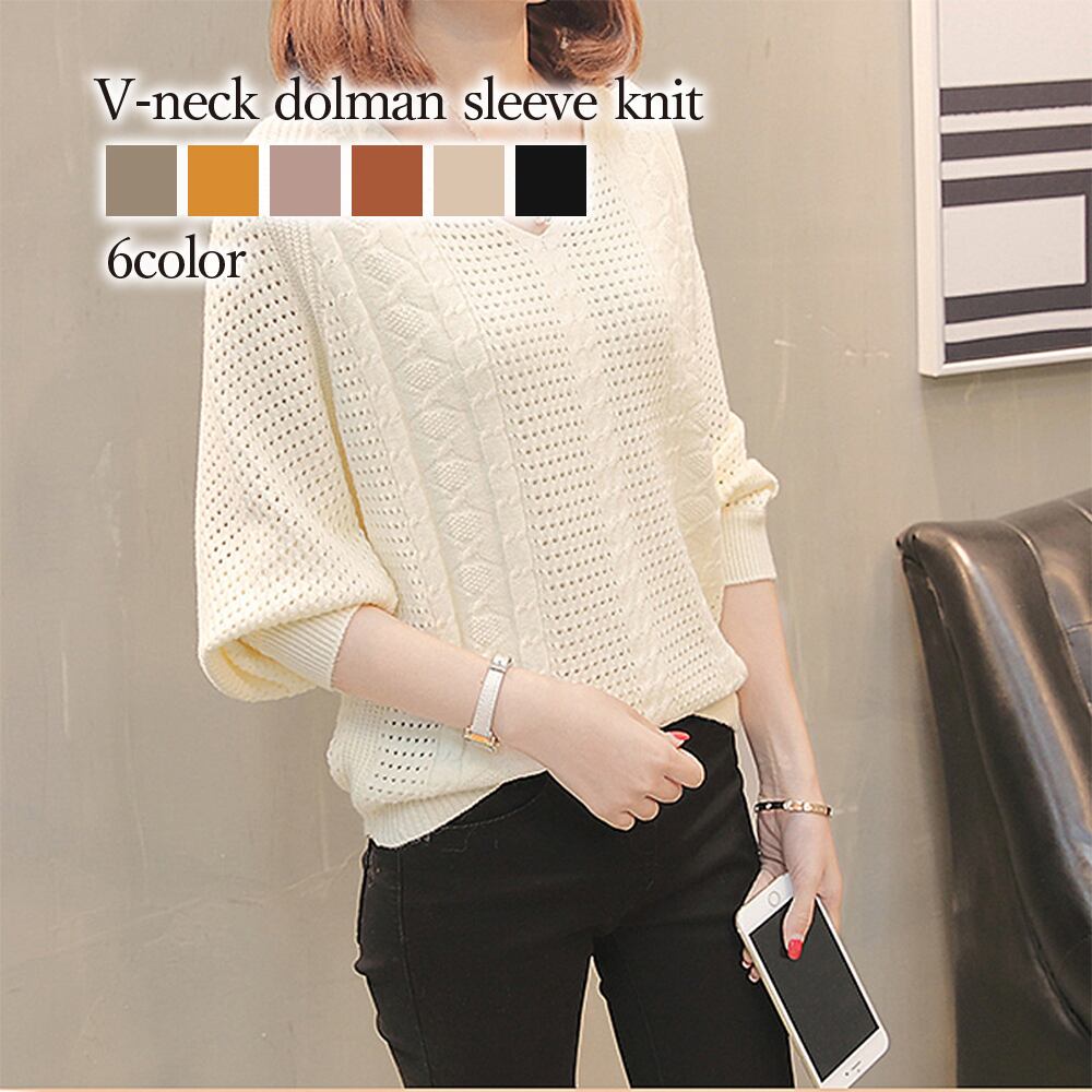 ★送料無料★ Vネックドルマンスリーブニット レディース セーター lit-149 【韓国ファッション】