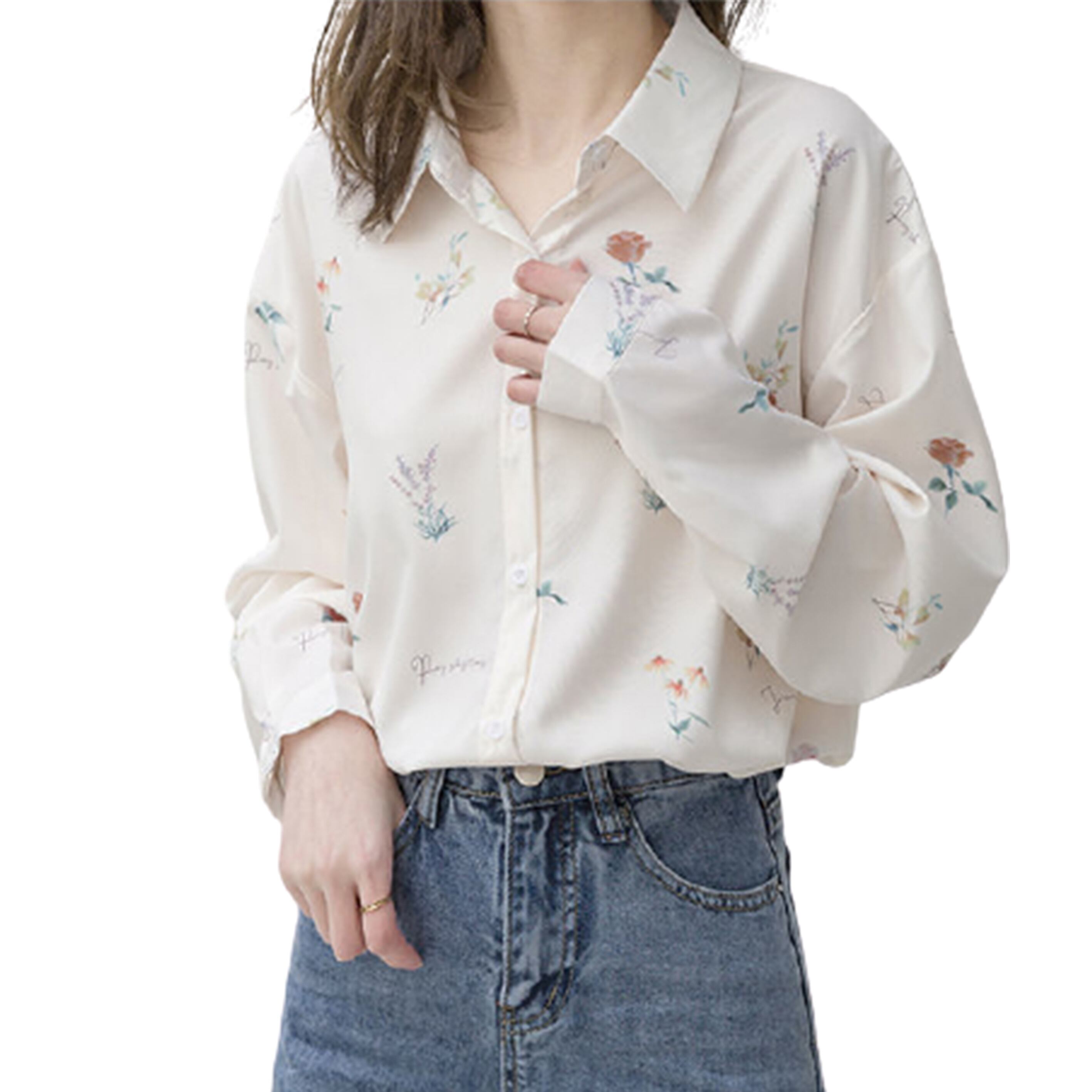 ★送料無料★ 花柄ホワイトシフォンシャツ レディース ブラウス lit-177 【韓国ファッション】