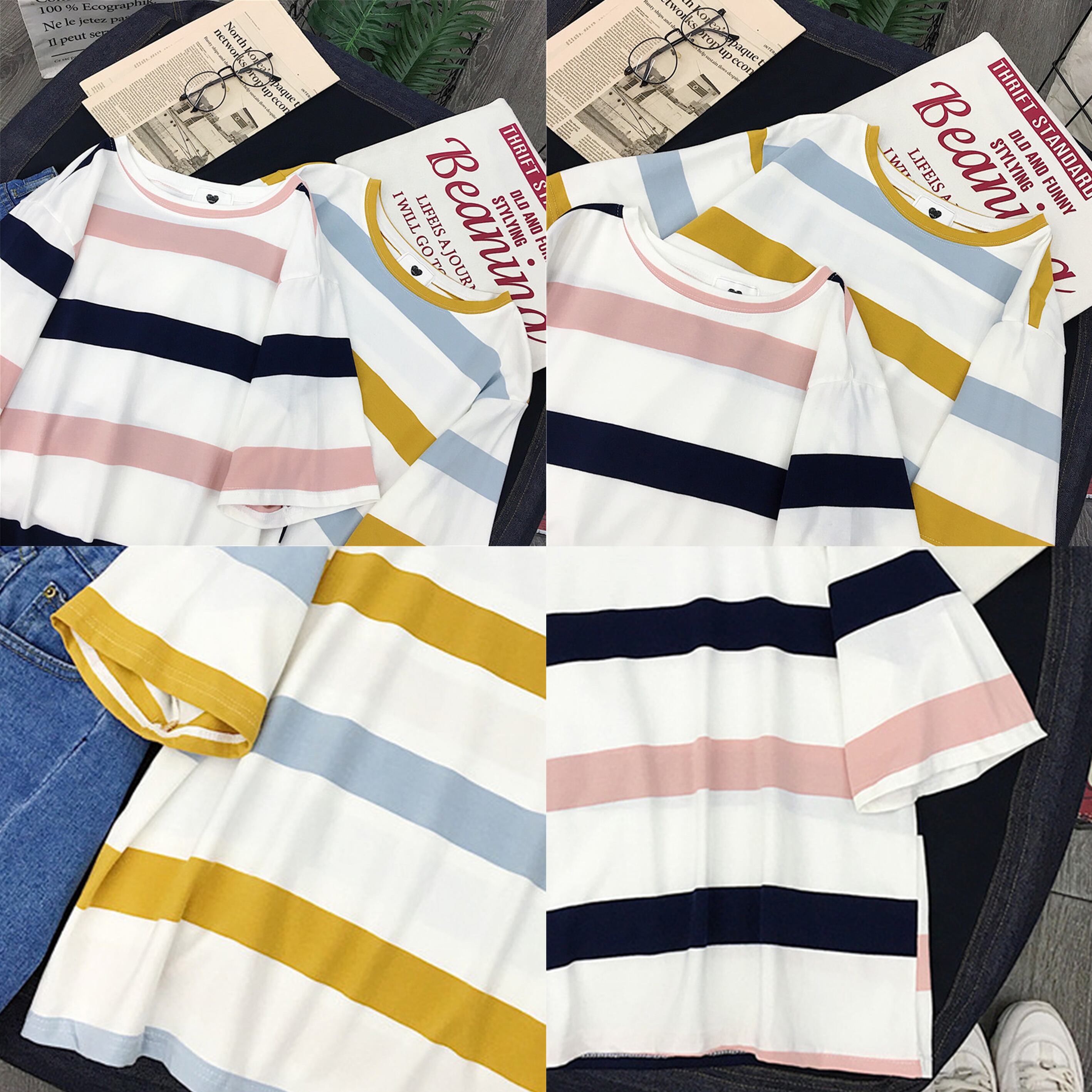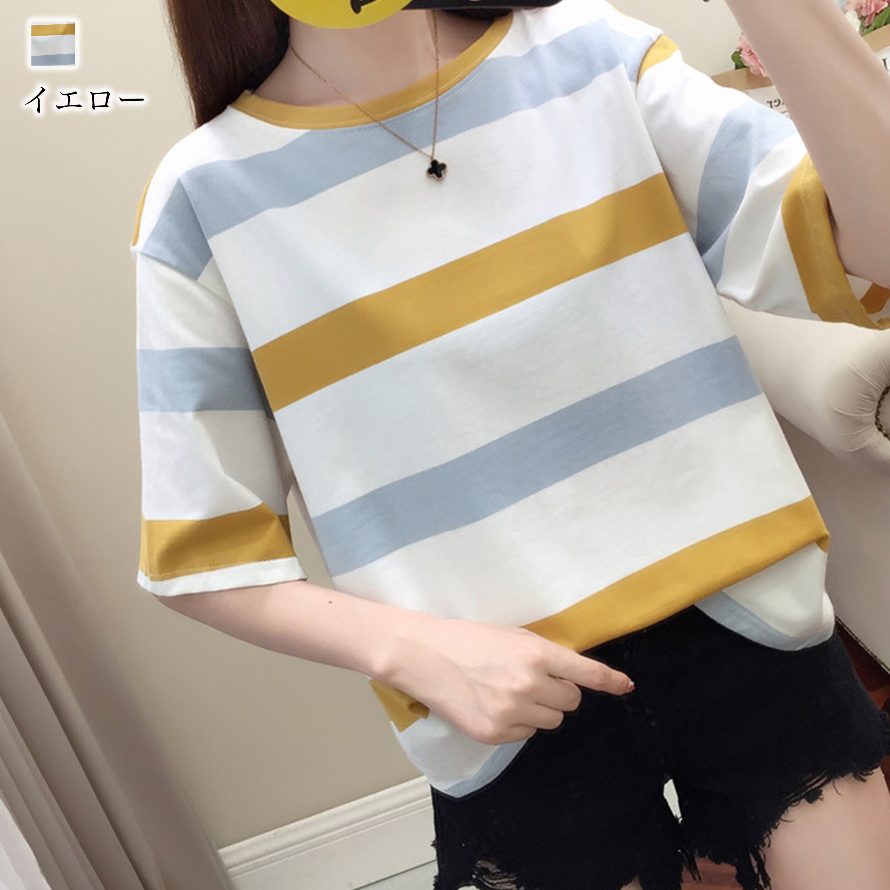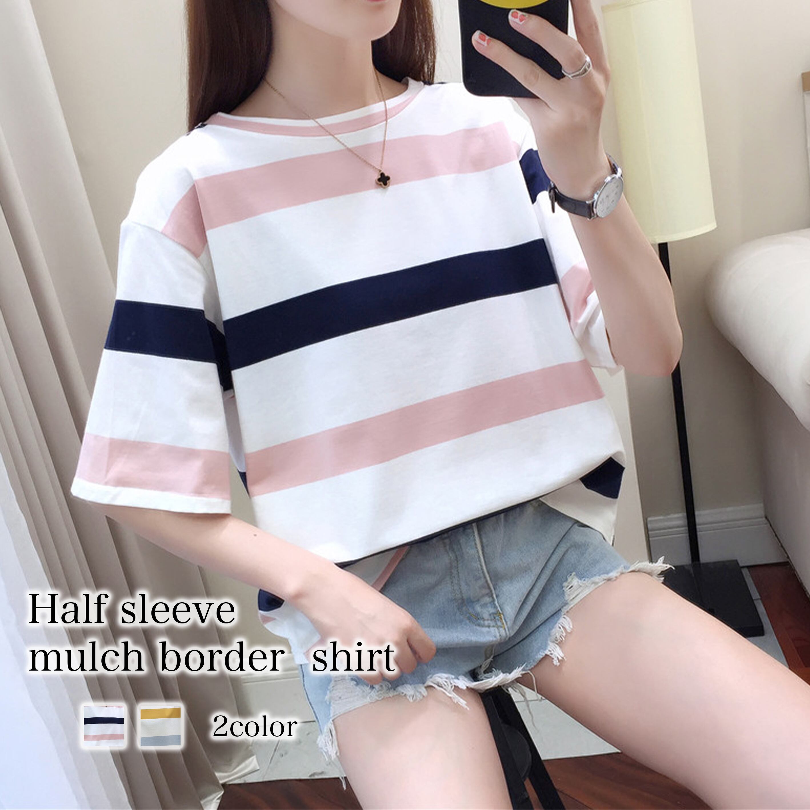 ★送料無料★ 五分袖マルチボーダーシャツ レディース Tシャツ lit-184 【韓国ファッション】