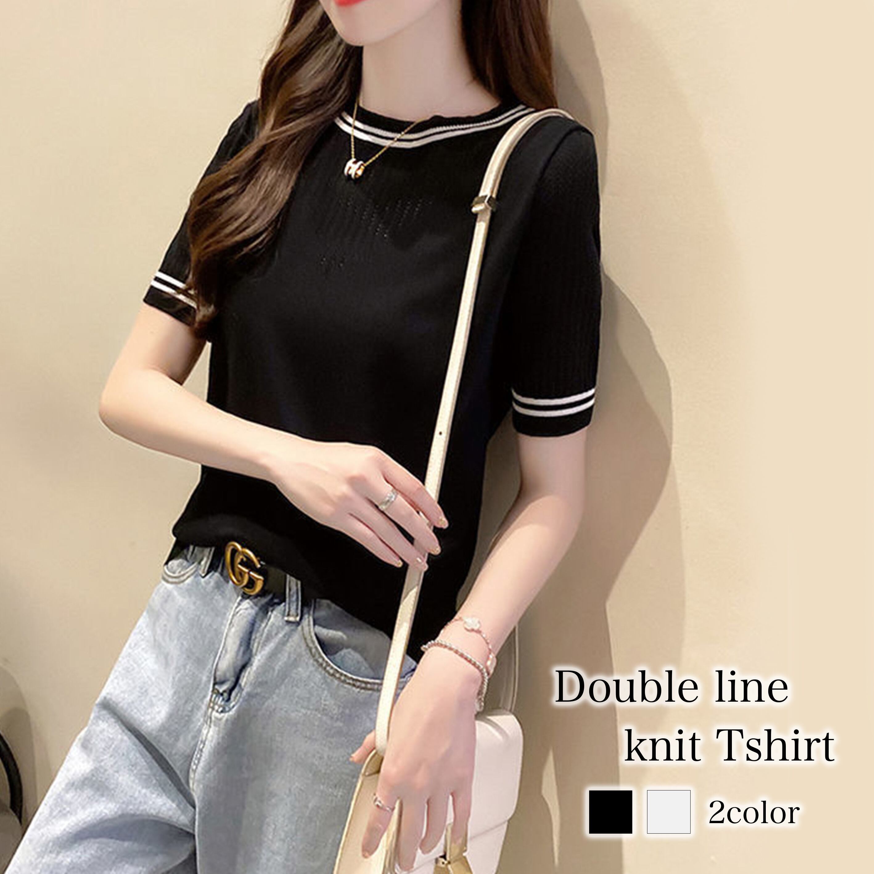 ★送料無料★ ダブルラインニットTシャツ レディース Tシャツ lit-193 【韓国ファッション】