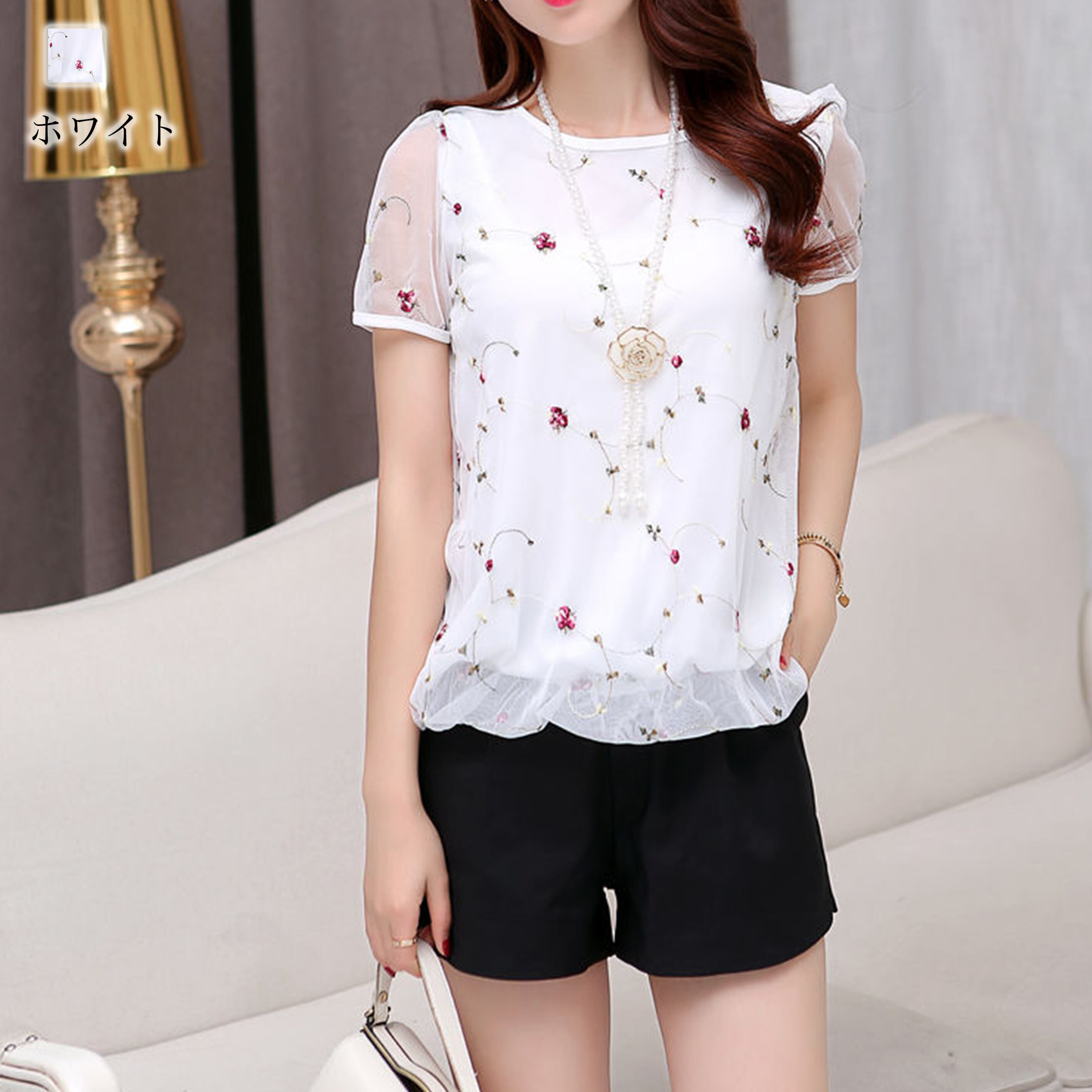 ★送料無料★ 半袖レース花柄ブラウス レディース Tシャツ lit-198 【韓国ファッション】