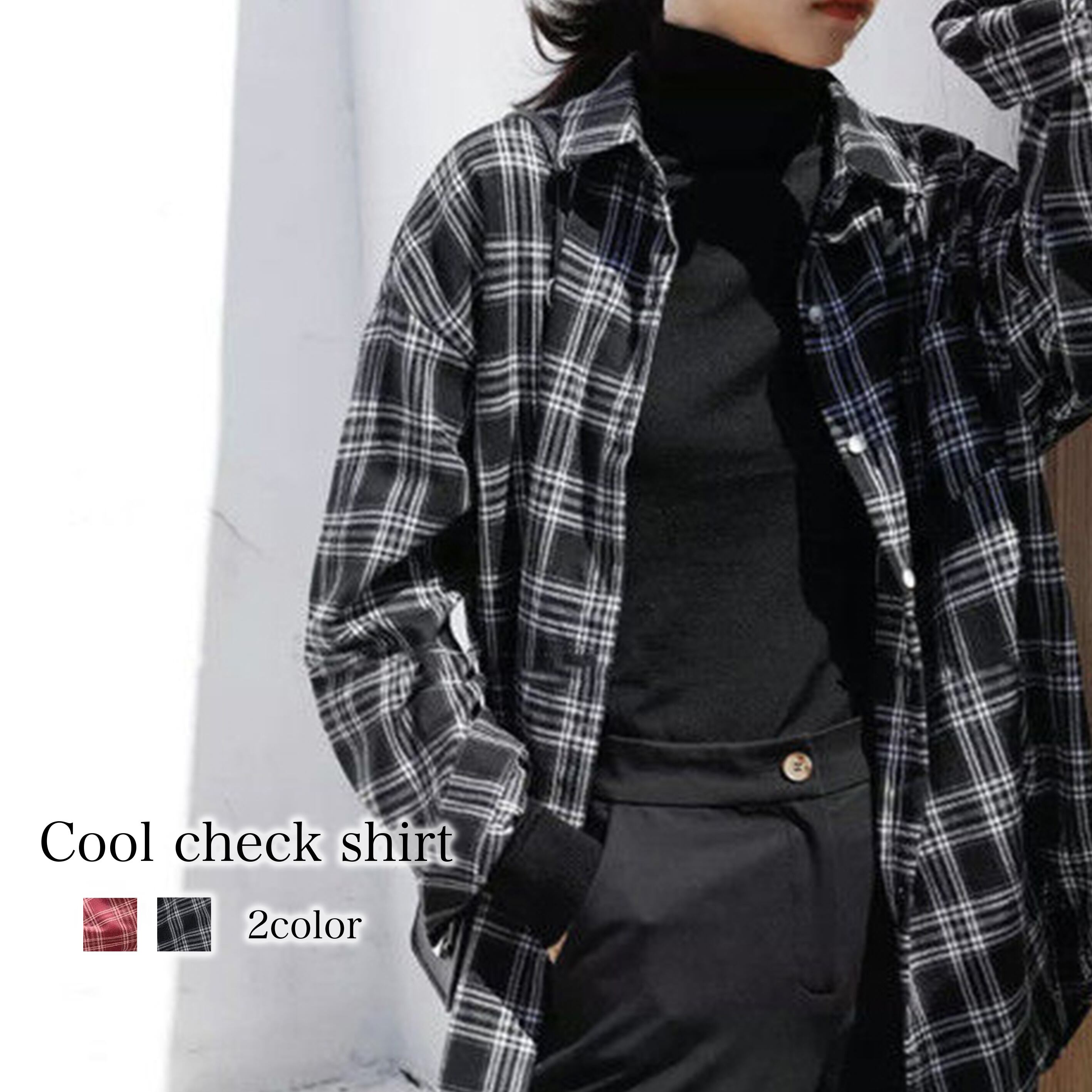 ★送料無料★ クールチェック柄シャツ レディース シャツ lit-222 【韓国ファッション】
