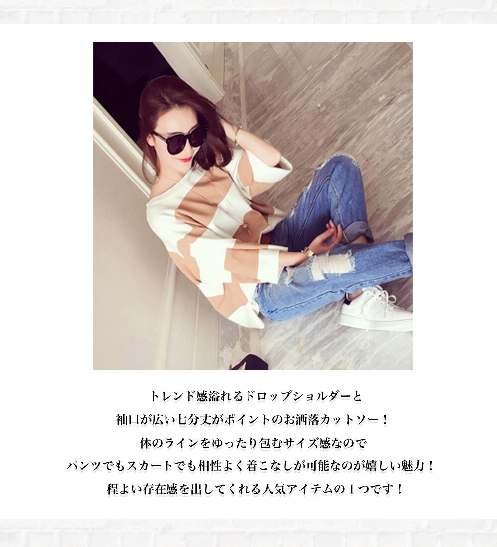 ★送料無料★ ゆったりボーダーカットソー レディース Tシャツ lit-49 【韓国ファッション】