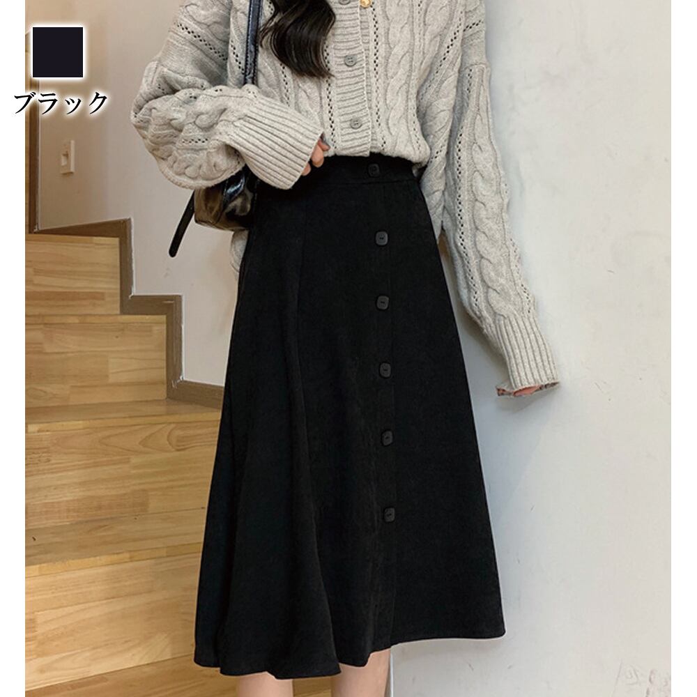 前ボタンコーデュロイスカート ロングスカート レディース lip-118