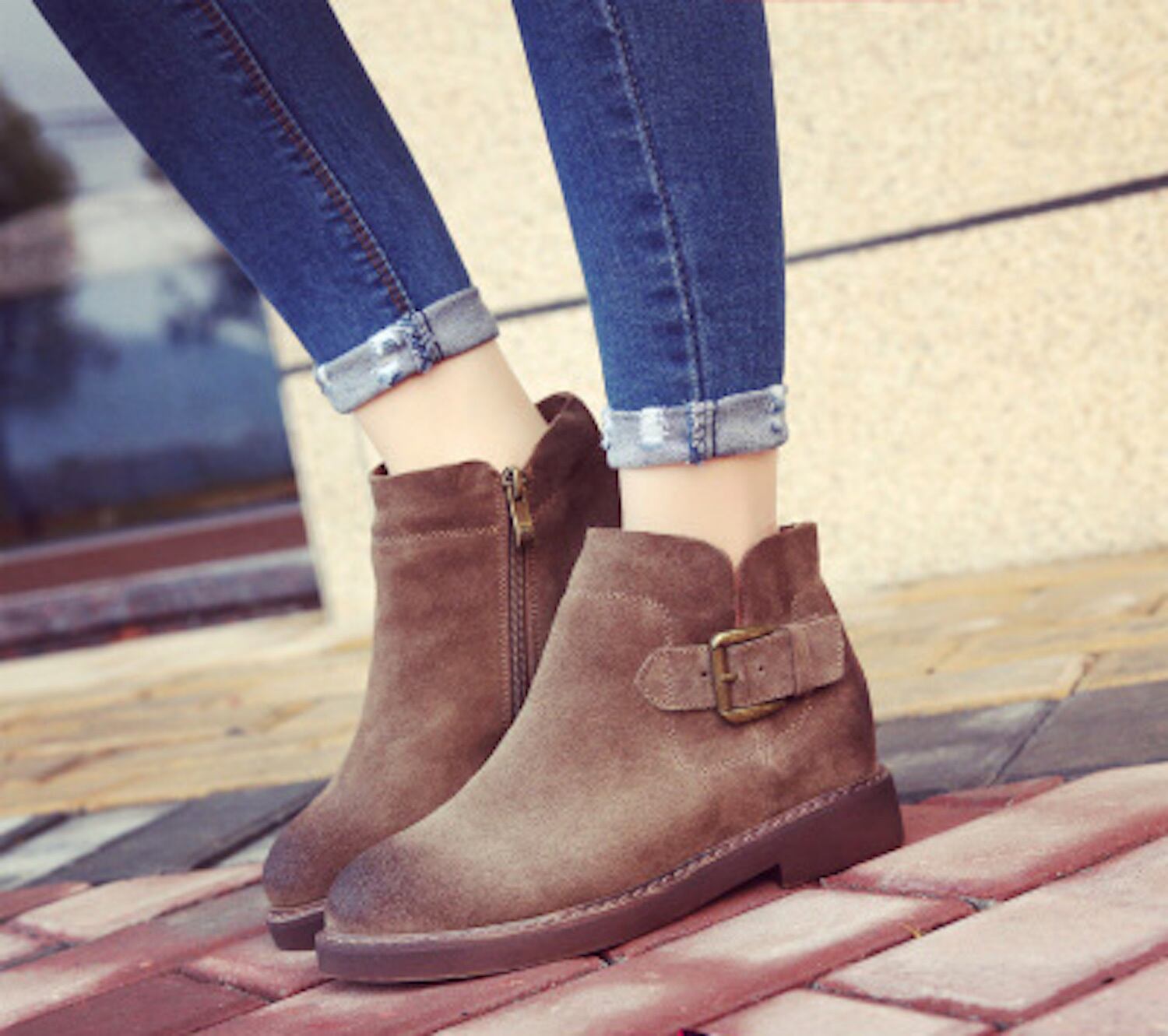 ★送料無料★ ブーツレザー 革 レディース ウォーキングシューズ ショートブーツ 革靴 軽量 カジ shs-568 【韓国ファッション】
