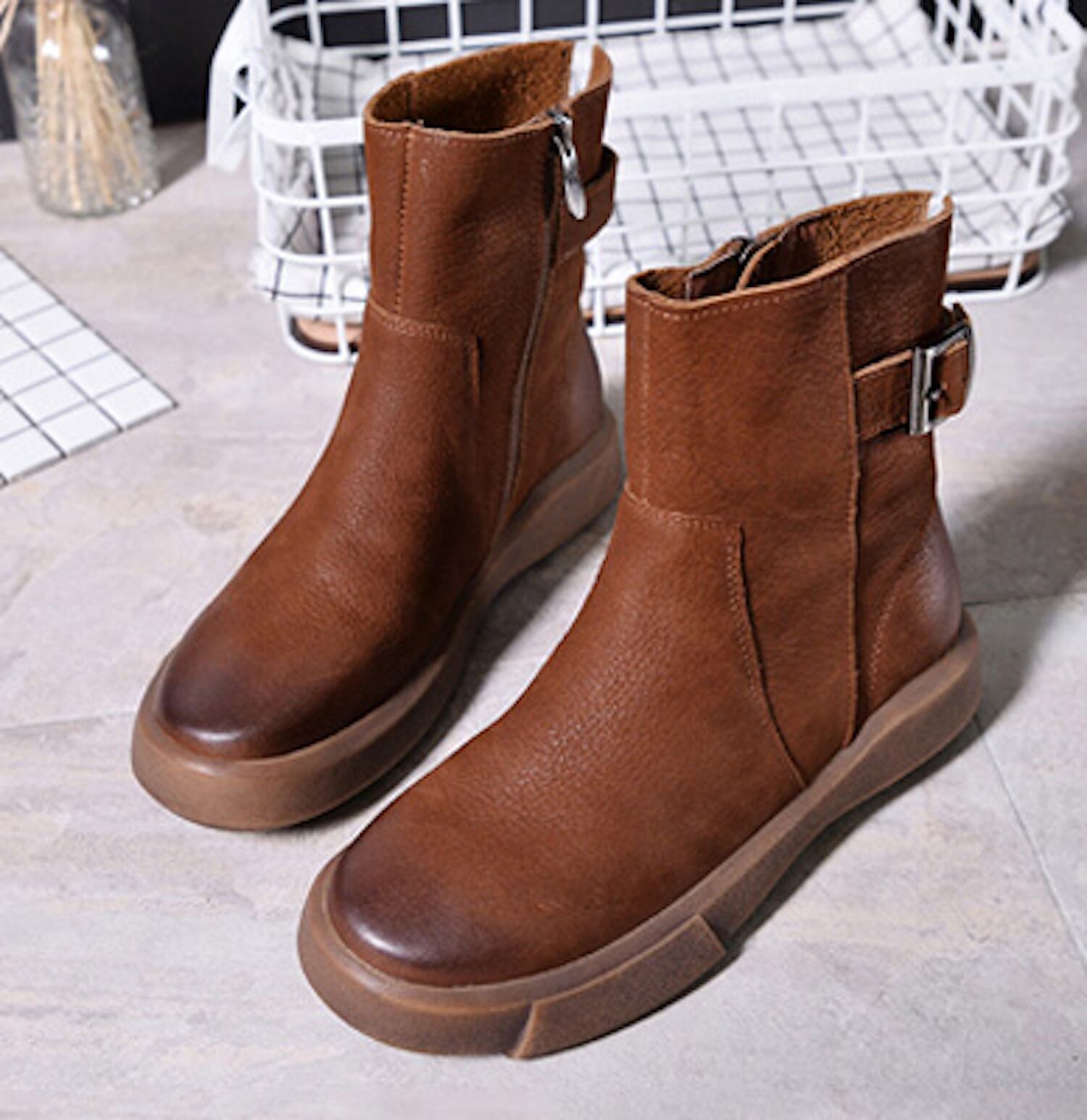 ★送料無料★ ブーツ ウォーキングシューズ レザー レディース 革 ショートブーツ 革靴 軽量 カ shs-569 【韓国ファッション】