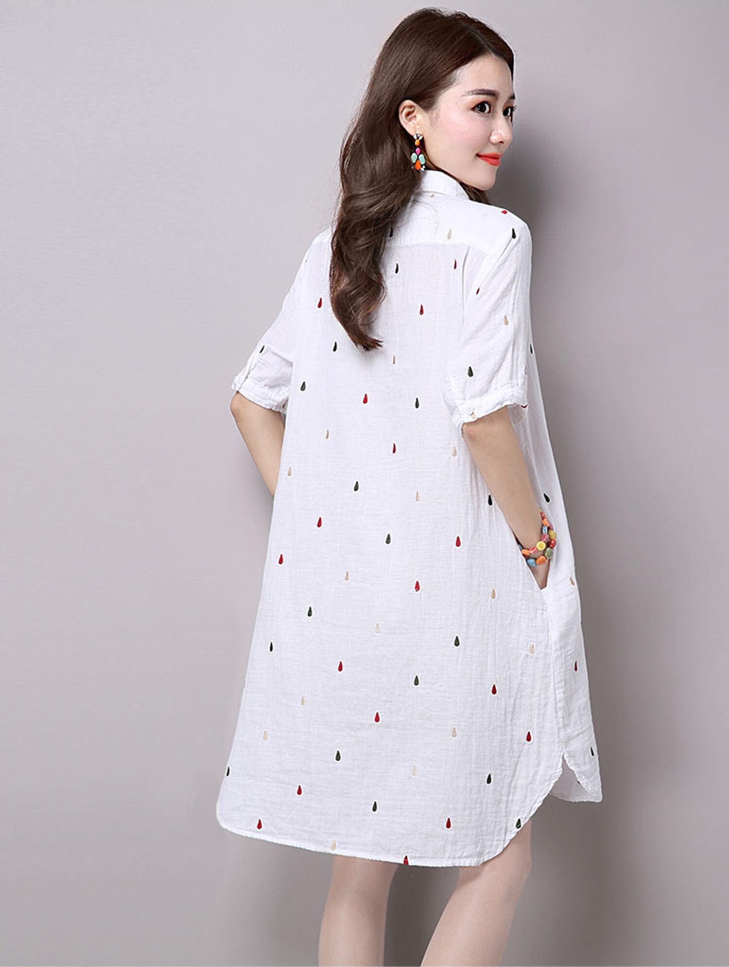 ★送料無料★ ワンピース ドレス チュニック レディース シャツ オフィス スカート ロング カジ tps-357 【韓国ファッション】