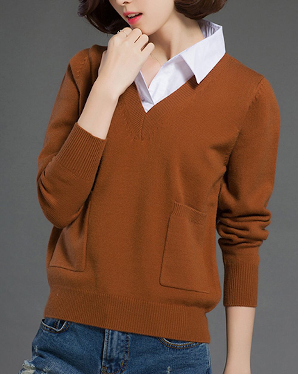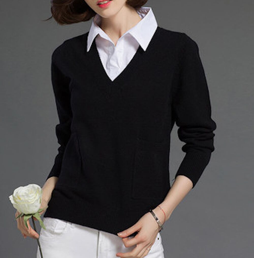 ★送料無料★ セーター Tシャツ チュニック ニット レディーストップス インナー ブラウス オフ tps-1427 【韓国ファッション】